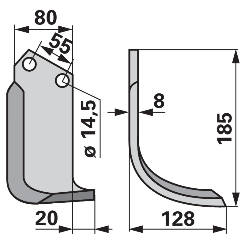 Nož kutni desni 80×8 L = 185 radna širina 128 LAB = 55
