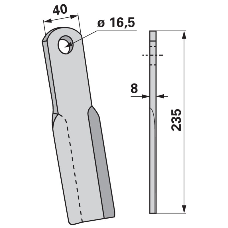 Nož tarupa 40×8 L=235 Lo 16,5