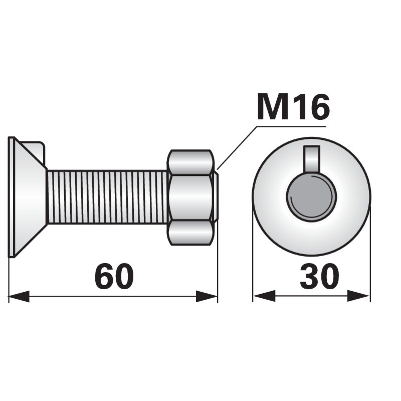 Vijak pluga 1 zub M16x60 čvrstoća 8.8