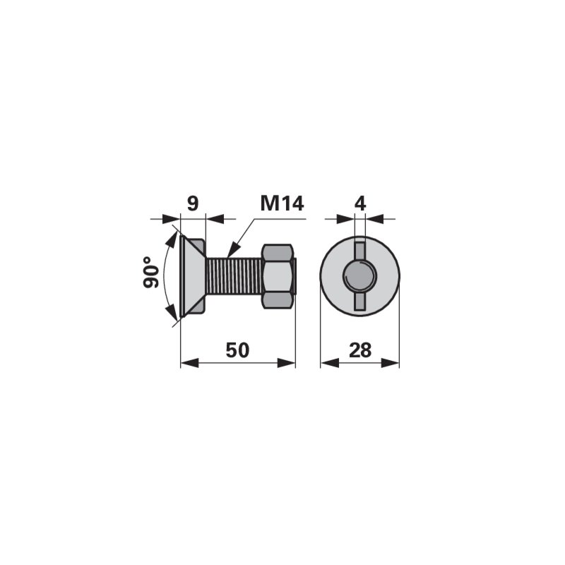 Vijak pluga 2 zuba M14x50 čvrstoća 8.8