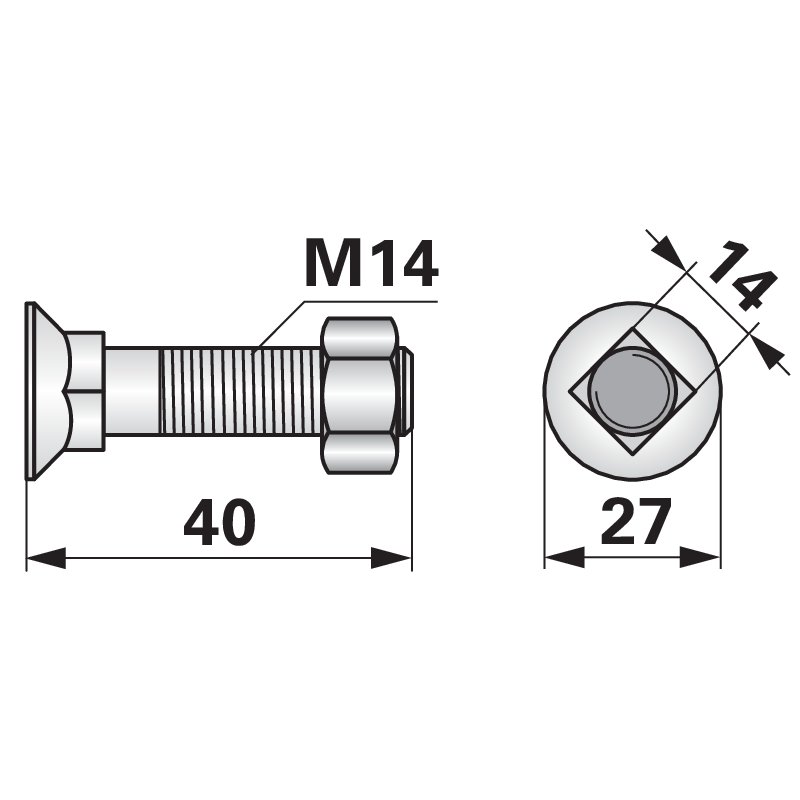 Vijak pluga M14x40 čvrstoća 12.9, 10 Komad