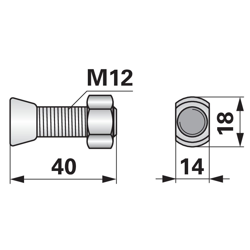 Vijak pluga ovalni Kverneland M12x40 čvrstoća 12.9, 10 Komad