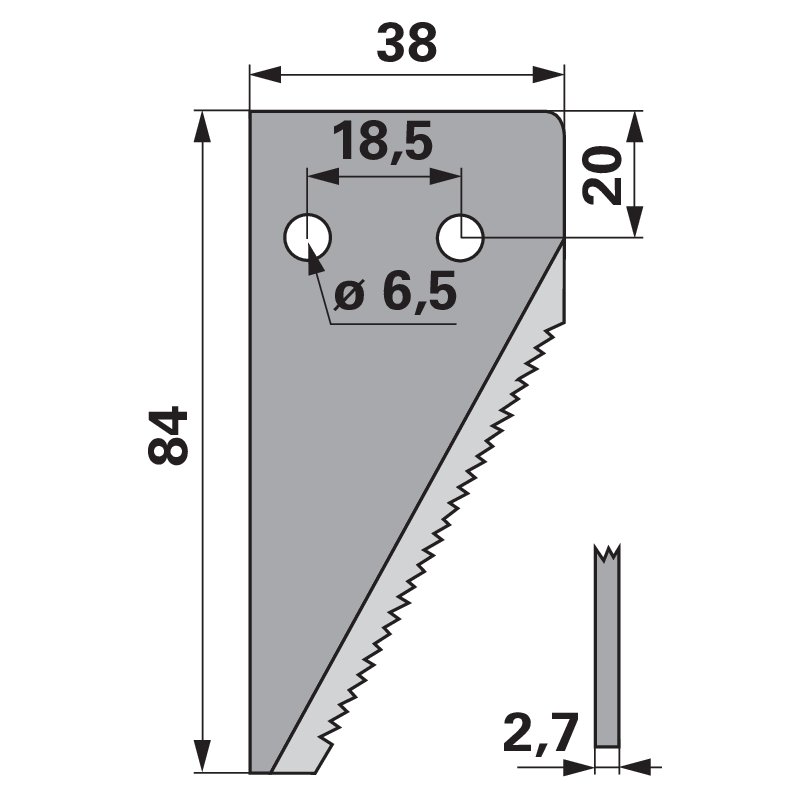 Zadnji nož gornji nazubljen odgovara za Claas 611204.0